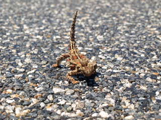 Fuer die Echsen ist es wohl zu kalt. Darum gehen Sie auf die Strasse um sich aufzuwaerem.