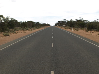 Durch das Nullarbor gefahren. Das kommt von dem lateinischen Nullus Arborus = keine Baeume. Die Einheimischen haben den Ort Wasserlos genannt.