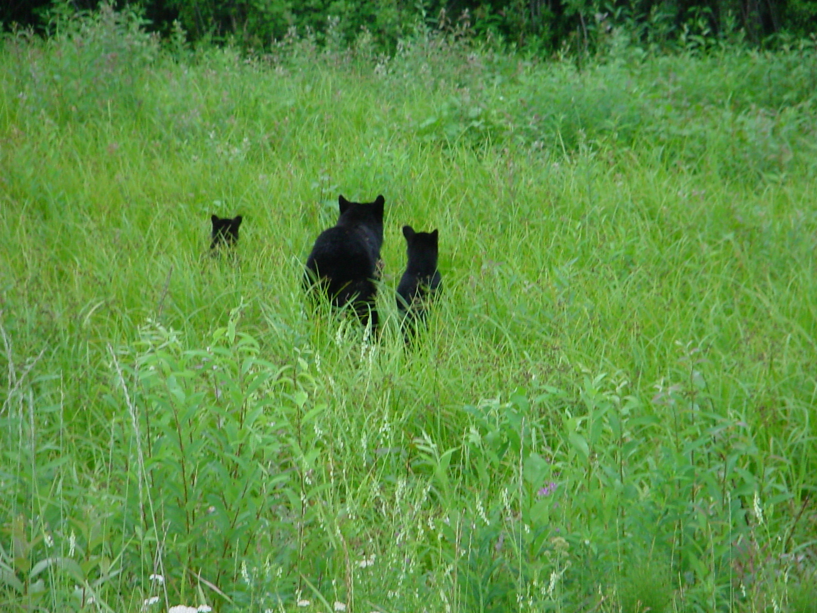 Baeren mal hautnahe…… Schwarzbaerenmutter mit 2 Kindern. 1 Meter von uns entfernt. Keine Gitter dazwischen. Wow………..